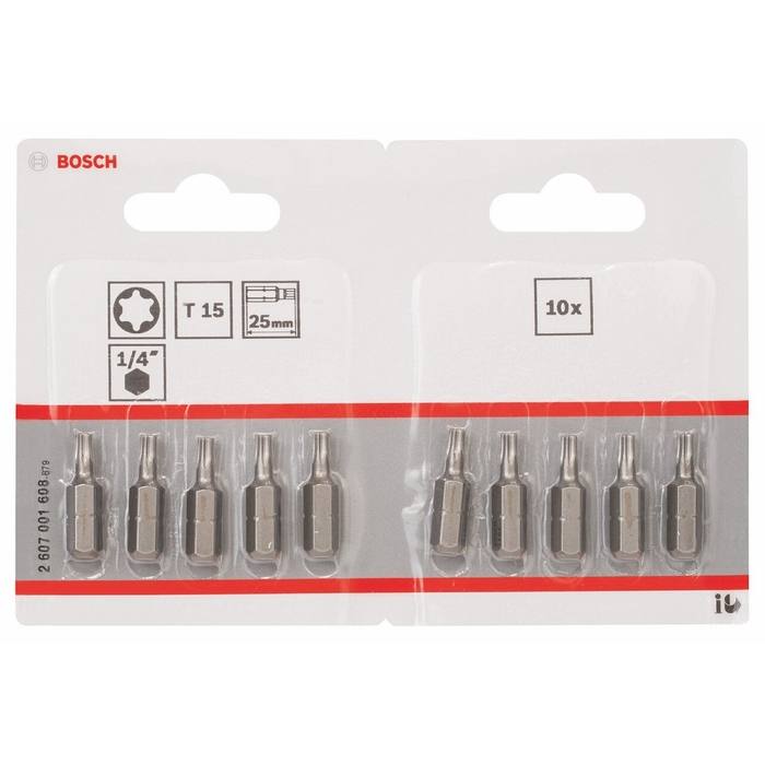 BOSCH Set 10 biti Extra Hard 25 mm, T15