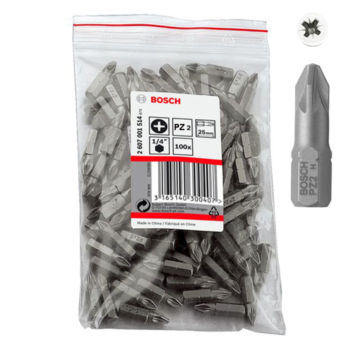 BOSCH Set 100 biti Extra Hard 25 mm, PZ2