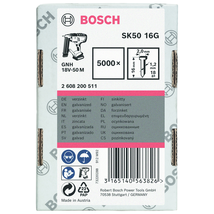 BOSCH Set 5000 cuie zincate, cu cap T, SK50 16G, 1.2x2x1x16 mm pentru GSK 50, GNH 18V-50 M