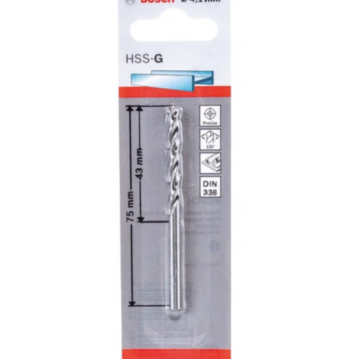 BOSCH Burghiu metal HSS-G 4.1x43x75 mm