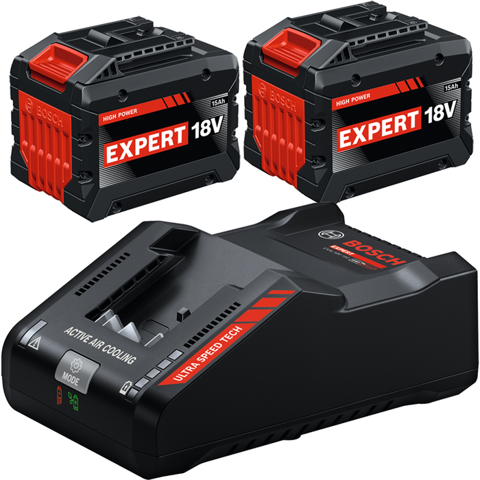 Set 2 acumulatori EXPERT Li-Ion, 18V, 15Ah + Incarcator EXPERT Li-Ion de 16Ah, 18V