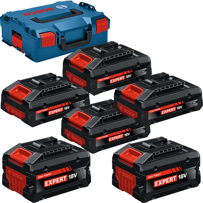 Set 4 acumulatori EXPERT Li-Ion, 18V, 4.0Ah + Set 2 acumulatori EXPERT Li-Ion, 18V, 8.0Ah + Valiza L-BOXX