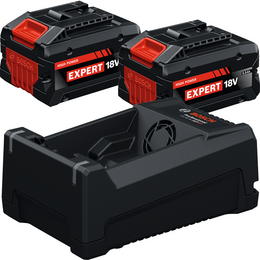 Set 2 acumulatori EXPERT Li-Ion, 18V, 5.5Ah + Incarcator rapid EXPERT Li-Ion, 12V si 18V, 8Ah