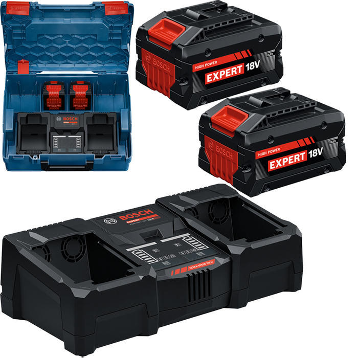 Set 2 acumulatori EXPERT Li-Ion, 18V, 8.0Ah + Incarcator EXPERT Li-Ion de 16Ah, 18V, pentru 2 acumulatori (incarcare paralela)