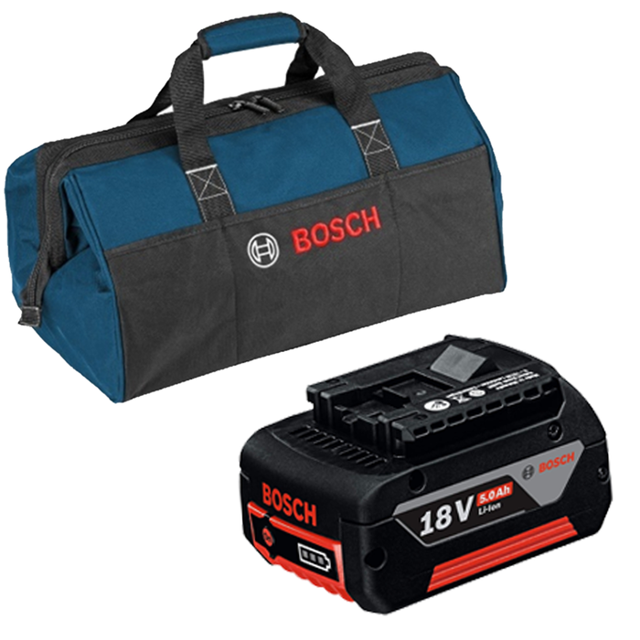 Acumulator Li-Ion, 18V, 5Ah CoolPack + Geanta textil Bosch (l:45cm)