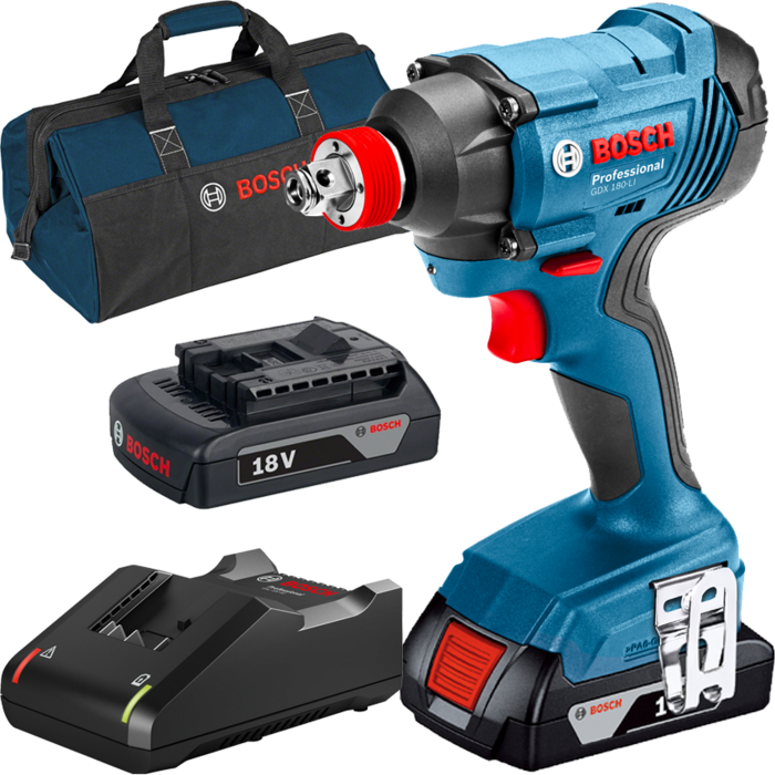 Masina de insurubat cu impact cu 2 acumulatori Li-Ion, 2Ah, 180Nm + Incarcator 4Ah + Geanta textil mediu