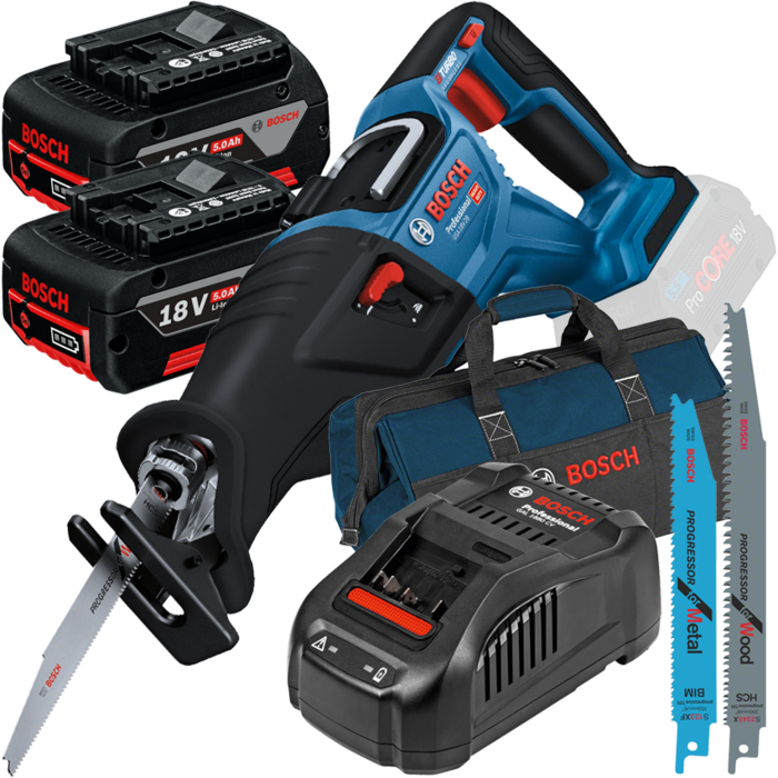 Ferastrau sabie brushless, Li-Ion + 2 acumulatori 5Ah CoolPack + Incarcator 8Ah + Geanta textil mediu