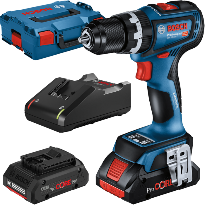 Masina de gaurit cu percutie brushless cu 2 acumulatori Li-Ion, 4Ah ProCore, 64Nm + L-BOXX