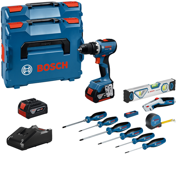 Masina de gaurit si insurubat brushless cu 2 acumulatori Li-Ion, 5Ah, 63Nm + Set 19 unelte in L-BOXX 102 + Valiza L-BOXX 136