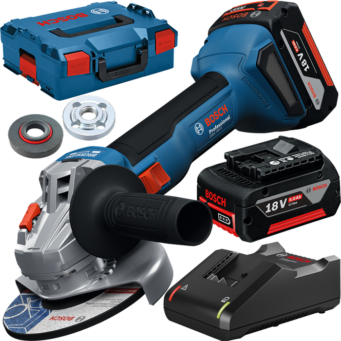 Polizor unghiular brushless, cu 2 acumulatori Li-Ion, 5Ah, diametru disc 125 mm + L-BOXX
