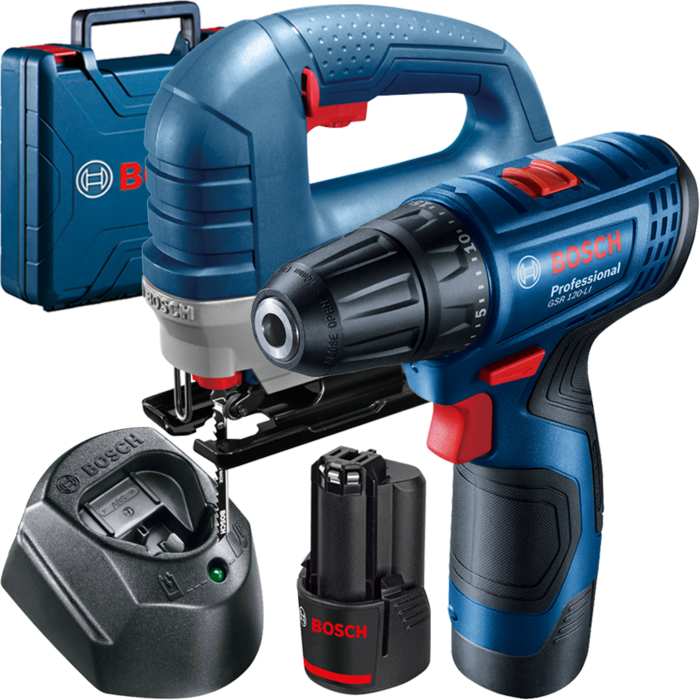 GST 8000 E Ferastrau vertical 710 W + GSR 120-LI Masina de gaurit si insurubat cu 2 acumulatori Li-Ion, 2Ah, 30Nm + Valiza