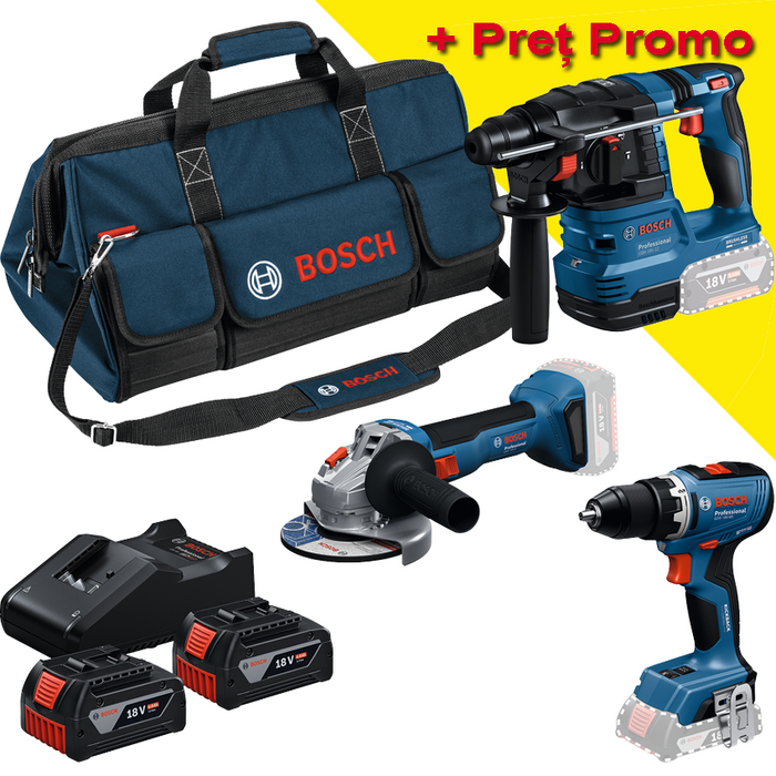 GSR + GWS + GBH + 2 x GBA 18V 4.0 Ah + GAL 18V-40 + Geanta textil