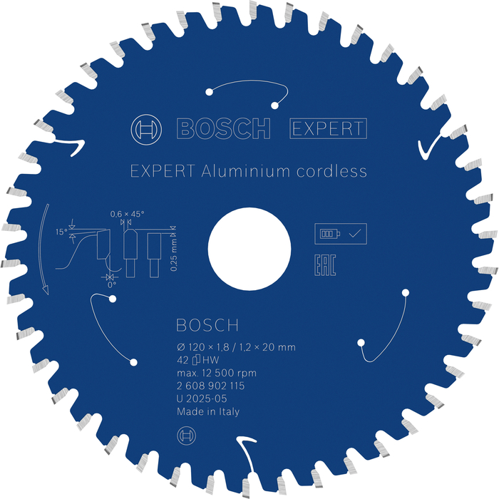 BOSCH Pânză de fierăstrău circular EXPERT Aluminium cordless, 120 x 1,8/1,2 x 20 mm, T42