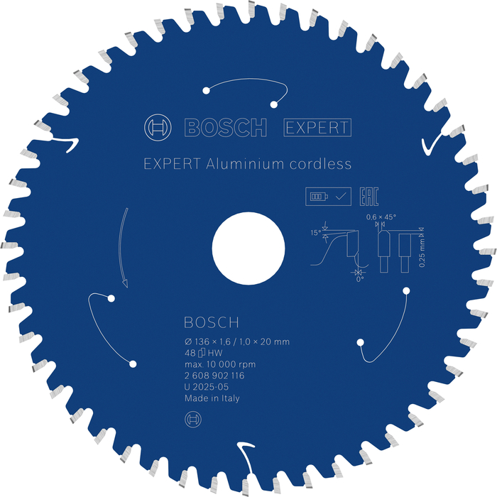 BOSCH Pânză de fierăstrău circular EXPERT Aluminium cordless, 136 x 1,6/1 x 20 mm, T48