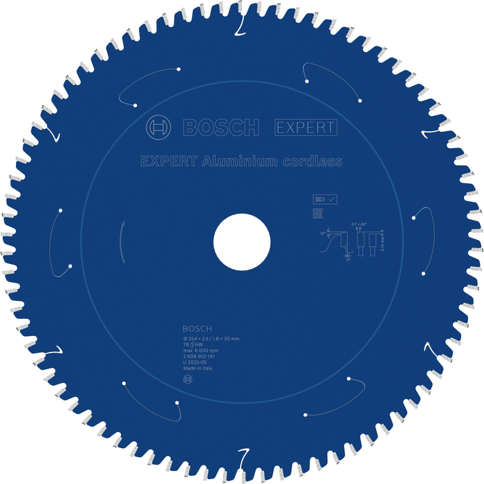 BOSCH Pânză de fierăstrău circular EXPERT Aluminium cordless, 254 x 2,4/1,8 x 30 mm, T78