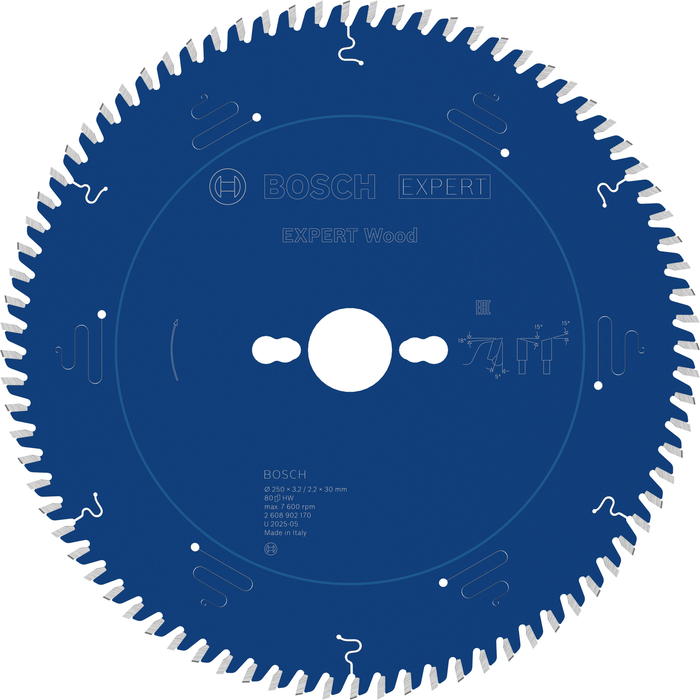 BOSCH Pânză de fierăstrău circular EXPERT Wood, 250 x 3,2/2,2 x 30 mm, T80