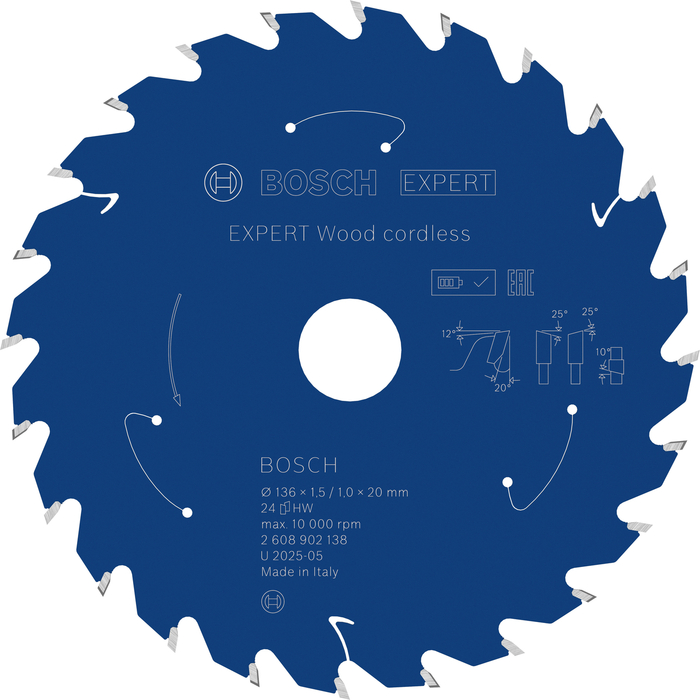 BOSCH Pânză de fierăstrău circular EXPERT Wood cordless, 136 x 1,5/1 x 20 mm, T24