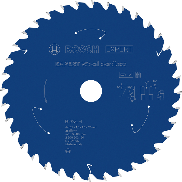 BOSCH Pânză de fierăstrău circular EXPERT Wood cordless, 165 x 1,5/1 x 20 mm, T36