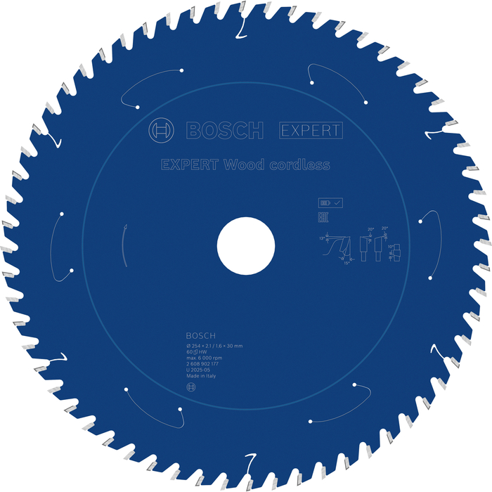 BOSCH Pânză de fierăstrău circular EXPERT Wood cordless, 254 x 2,1/1,6 x 30 mm, T60