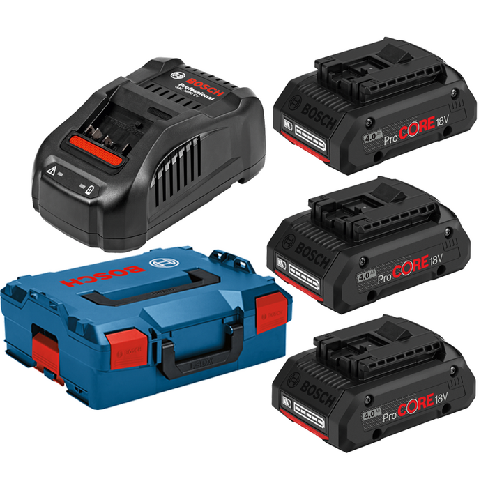 Set 3 acumulatori Li-Ion, 18V, 4Ah "ProCore" + Incarcator 8Ah + L-BOXX 136