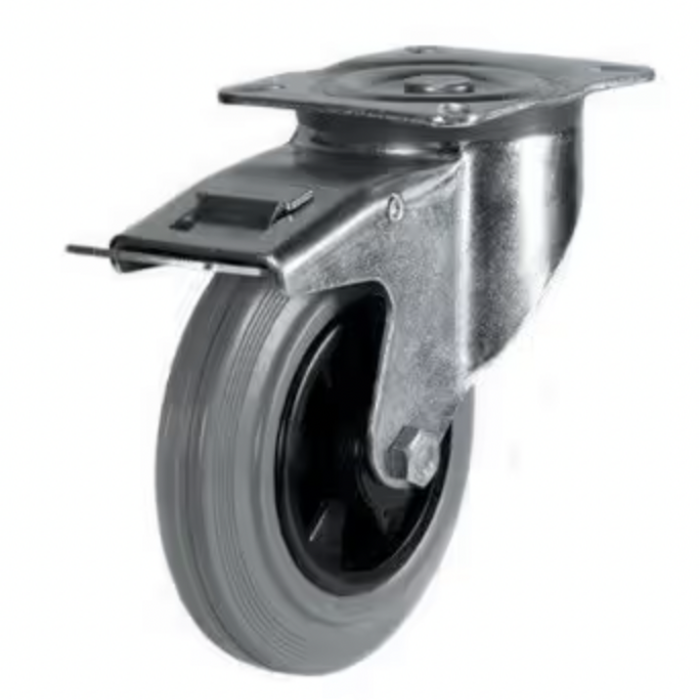 CROMWELL Roată pivotantă, 100 mm, fără frână, cu placă superioară, cauciuc, gri SWIVEL PLATE 100mm GREY RUBBERTYRE