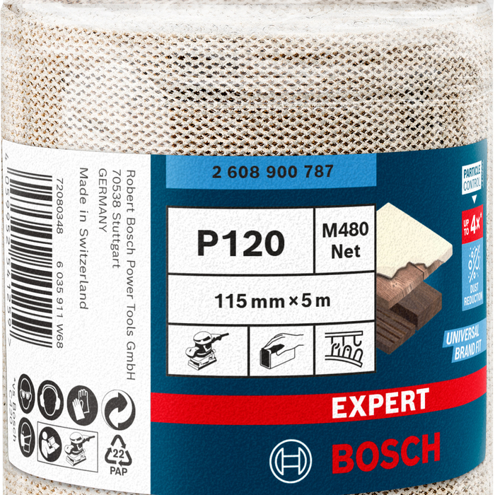 BOSCH Rola abraziva EXPERT (slefuire fara praf) 115 mm, 5 m, R120
