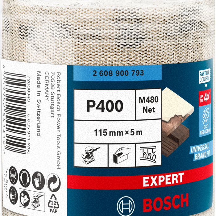 BOSCH Rola abraziva EXPERT (slefuire fara praf) 115 mm, 5 m, R400