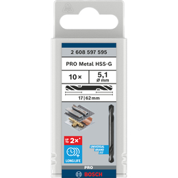 BOSCH Set 10 burghie cu varf dublu HSS-G 5.1x17x62 mm
