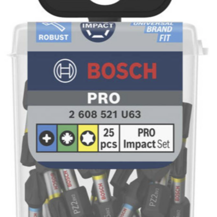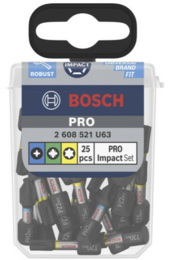 BOSCH Set 25 biti PRO Impact Control 25 mm, mixt in cutie Tic-Tac PH2(x5)-PZ2(x5)-T20(x5)-T25(x5)-T30(x5)