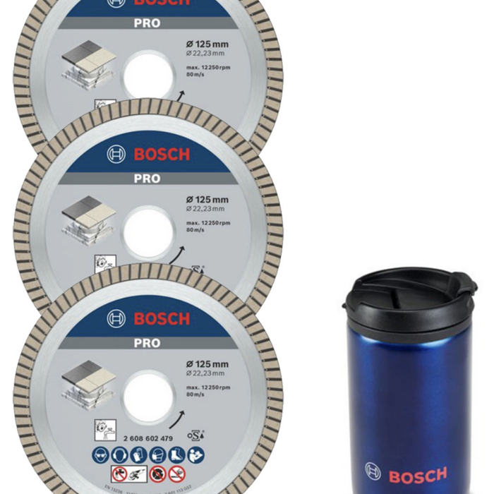 BOSCH Set 3 discuri diamantate gresie 125 BEST EXTRACLEAN TURBO + Cana termica Bosch