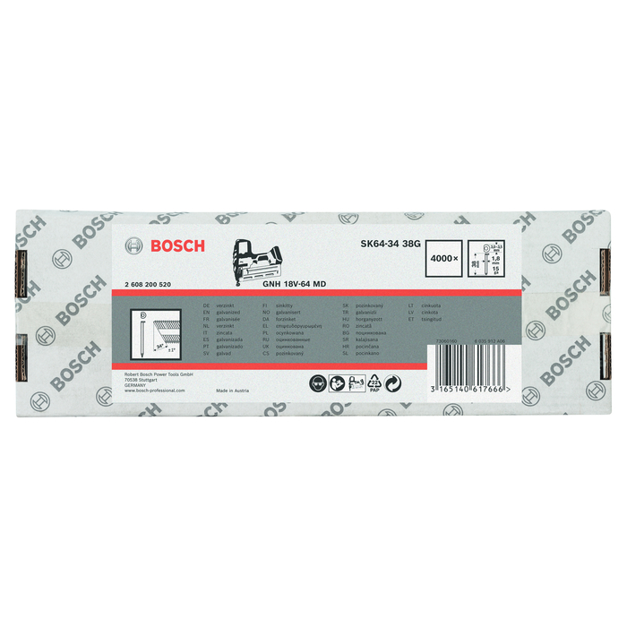 BOSCH Set 4000 cuie zincate, cu cap D, SK64-34 34G, 34°, 1.8x3.0-3.5x1.76x34 mm pentru GSK 64-34, GNH 18V-64 MD