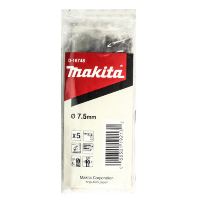 MAKITA Set 5 burghie metal HSS-CO 7.5 mm