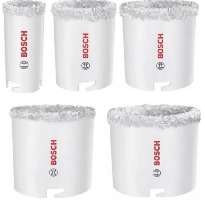 BOSCH Set 5 catote cu carburi metalice pentru caramida 33/53/67/73/83 mm + Flansa de prindere