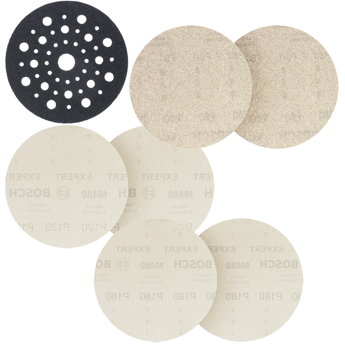 BOSCH Set 6 foi EXPERT (slefuire fara praf) 125 mm, mixte R80/120/180 + Piesa intermediara pentru protectie talpa