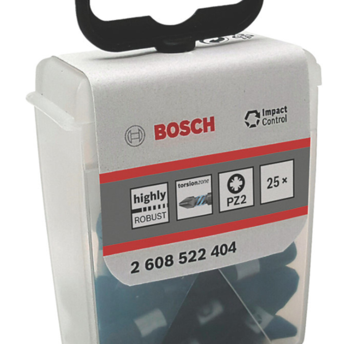BOSCH Set 25 biti Impact Control 25 mm, PZ2 in cutie Tic-Tac