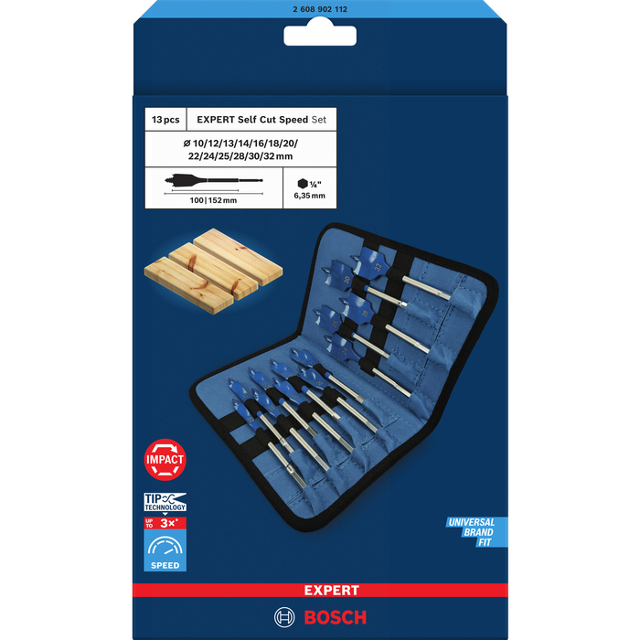 BOSCH Set de burghie plate EXPERT Self Cut Speed, 10/12/13/14/16/18/20/22/24/25/28/30/32, 13 buc.