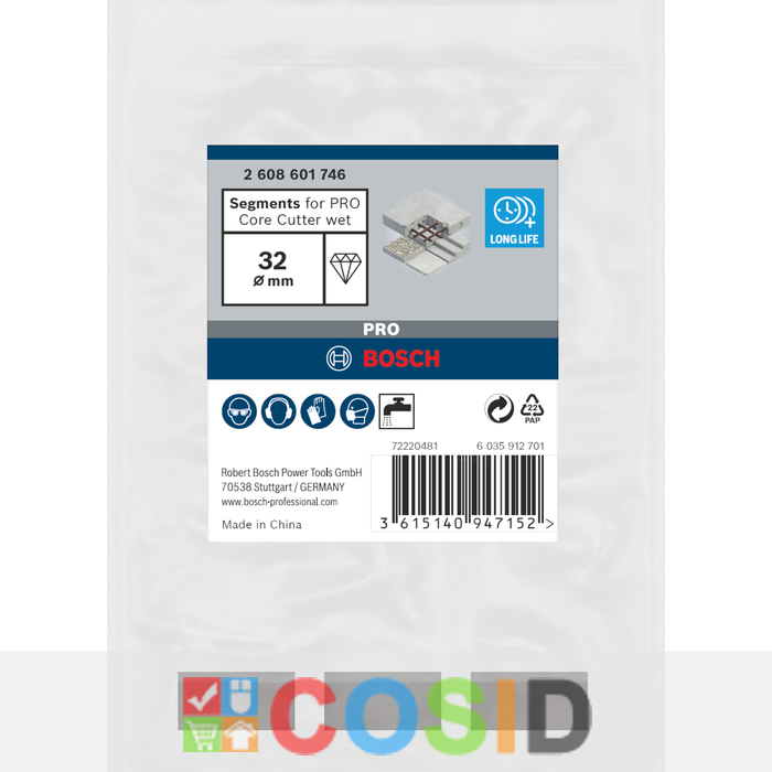 BOSCH Set 3 segmente pentru carote diamantate Ø 32, G 1/2", 10 mm