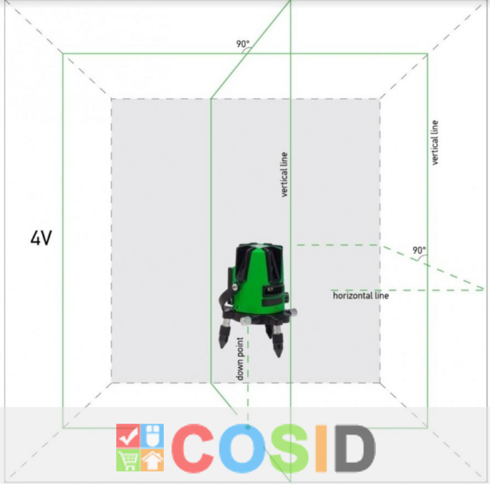 Proiectează 4 linii verticale, 1 orizontală și are functia fir cu plumb.
