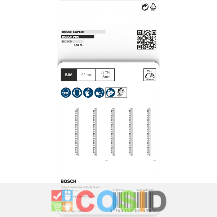 BOSCH T102BF Set 5 panze Clean for PMMA 92 mm