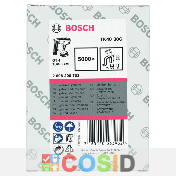 BOSCH Set 5000 capse zincate, TK40 30G, 5.8x1.2x30 mm pentru GTK 40, GTH 18V-38 M