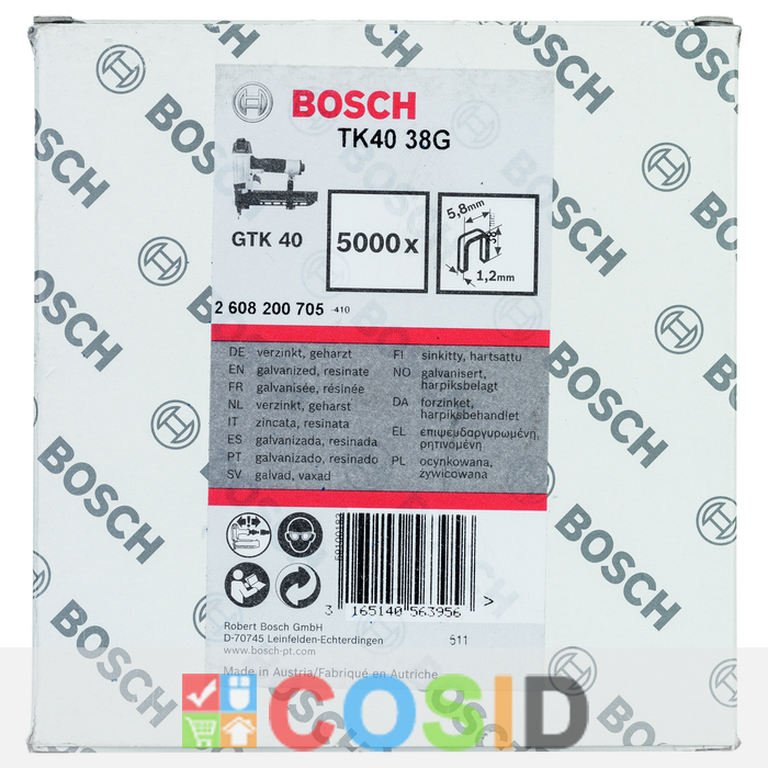 BOSCH Set 5000 capse zincate, TK40 38G, 5.8x1.2x38 mm pentru GTK 40, GTH 18V-38 M