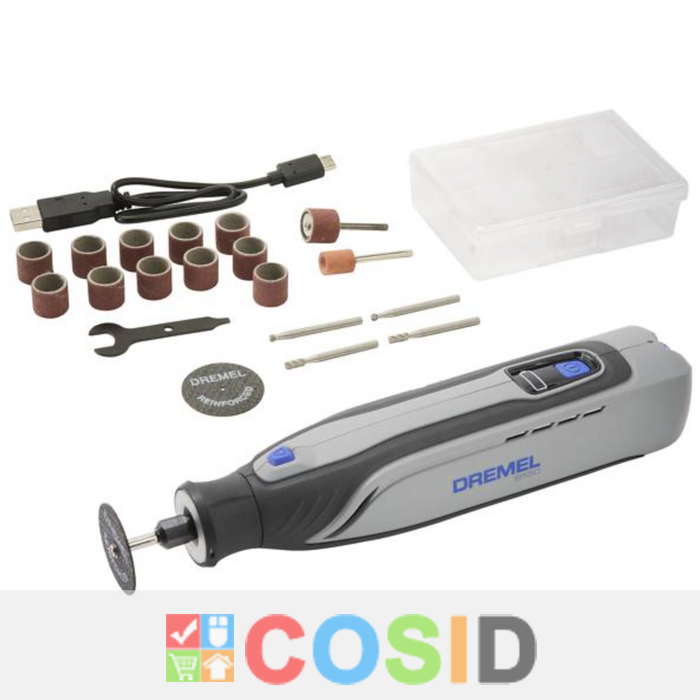 Dremel 8150 vine complet cu 20 de accesorii versatile pentru gravare, șlefuire, tăiere, șlefuire, un cablu de încărcare USB-C convenabil pentru porniri rapide și ușoare și o carcasă robustă pentru accesorii pentru a menține totul organizat.