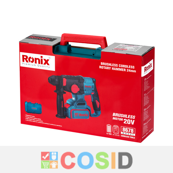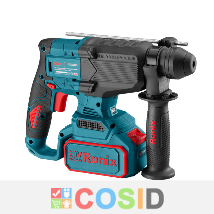 Ronix 8678 Ciocan rotopercutor profesional are un design ergonomic, compact, cu maner rotativ la 360 de grade, ofera un control maxim. Pentru a evita supraincalzirea motorului, cutiei de viteze si bateriei, s-a aplicat un sistem de ventilatie optimizat pe ax. Datorita controlului vibratiilor prin manerul suplimentar si sistemului de prindere SDS-plus, utilizatorii se simt mai confortabil si obosesc mai putin.