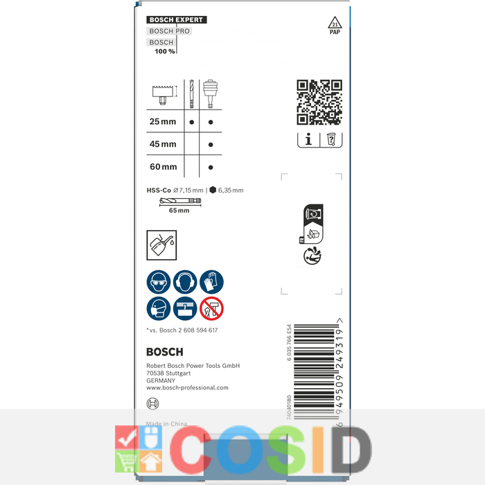 BOSCH Ax de prindere cu burghiu pentru găuri pilot EXPERT Power Change Plus, tijă hexagonală 8,7 mm, HSS-Co, 7,15 x 25 x 65 mm