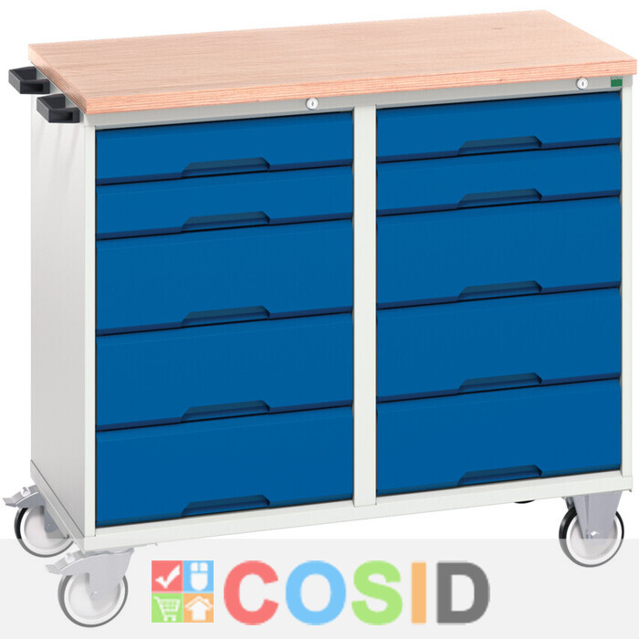 CROMWELL Bott. Verso Drawer Cabinet, 10 Drawers, Blue/Light Grey, 965 x 1050 x 550mm