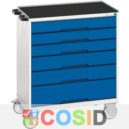 CROMWELL Bott. Verso Mobile Workbench, 6 Drawers, Blue/Light Grey, 965 x 800 x 550mm