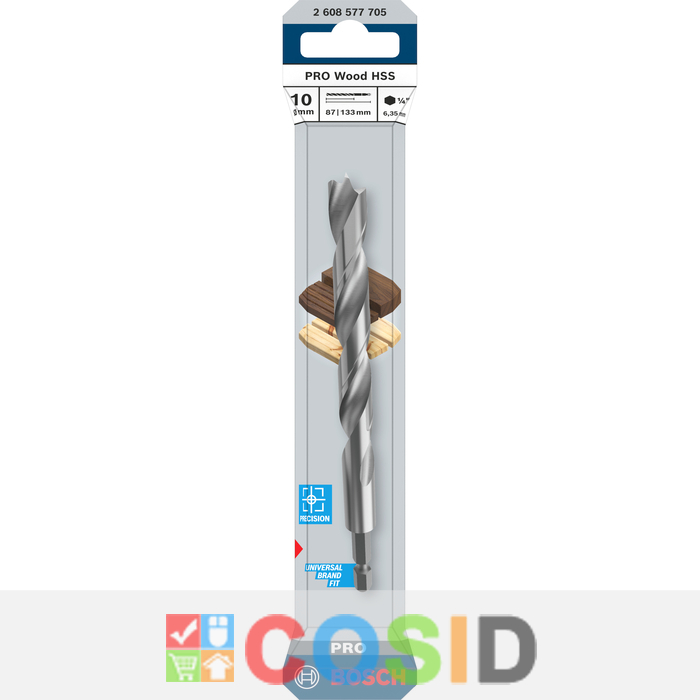 BOSCH Burghiu cu vârf de centrare PRO Wood HSS, 10 x 87 x 133 mm