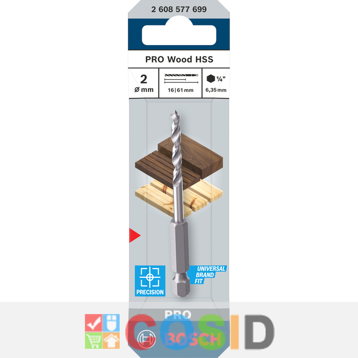 BOSCH Burghiu cu vârf de centrare PRO Wood HSS, 2 x 16 x 61 mm