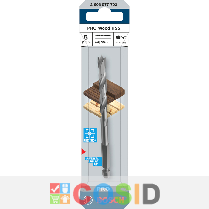 BOSCH Burghiu cu vârf de centrare PRO Wood HSS, 5 x 44 x 98 mm