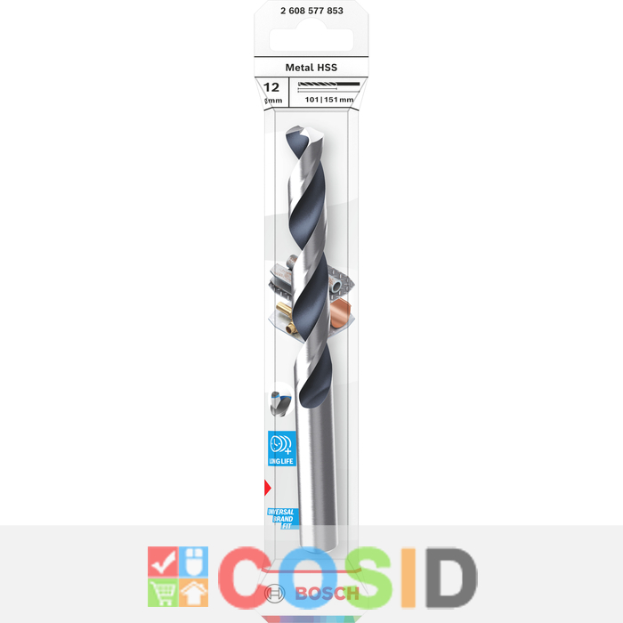 BOSCH Burghiu elicoidal Metal HSS, 12 x 101 x 151 mm, tijă CYL